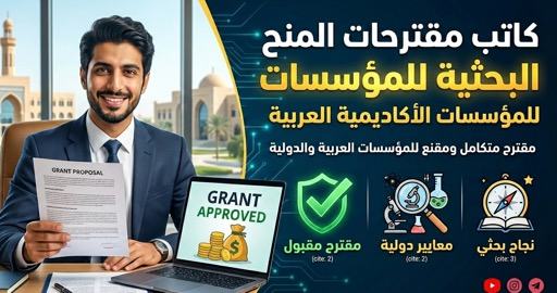 يساعدك هذا البرومبت على كتابة مقترح منحة بحثية متكامل ومقنع، مُصمَّم خصيصاً للمؤسسات الأكاديمية والجهات الممولة في العالم العربي، مع مراعاة المعايير الدولية للكتابة العلمية.