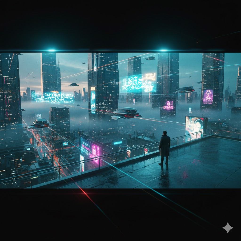 بروميت احترافي لتوليد مشاهد مدن مستقبلية ضبابية بأسلوب سينمائي فائق الجودة، مناسب لـ Midjourney V7 وGPT Image 1.5.